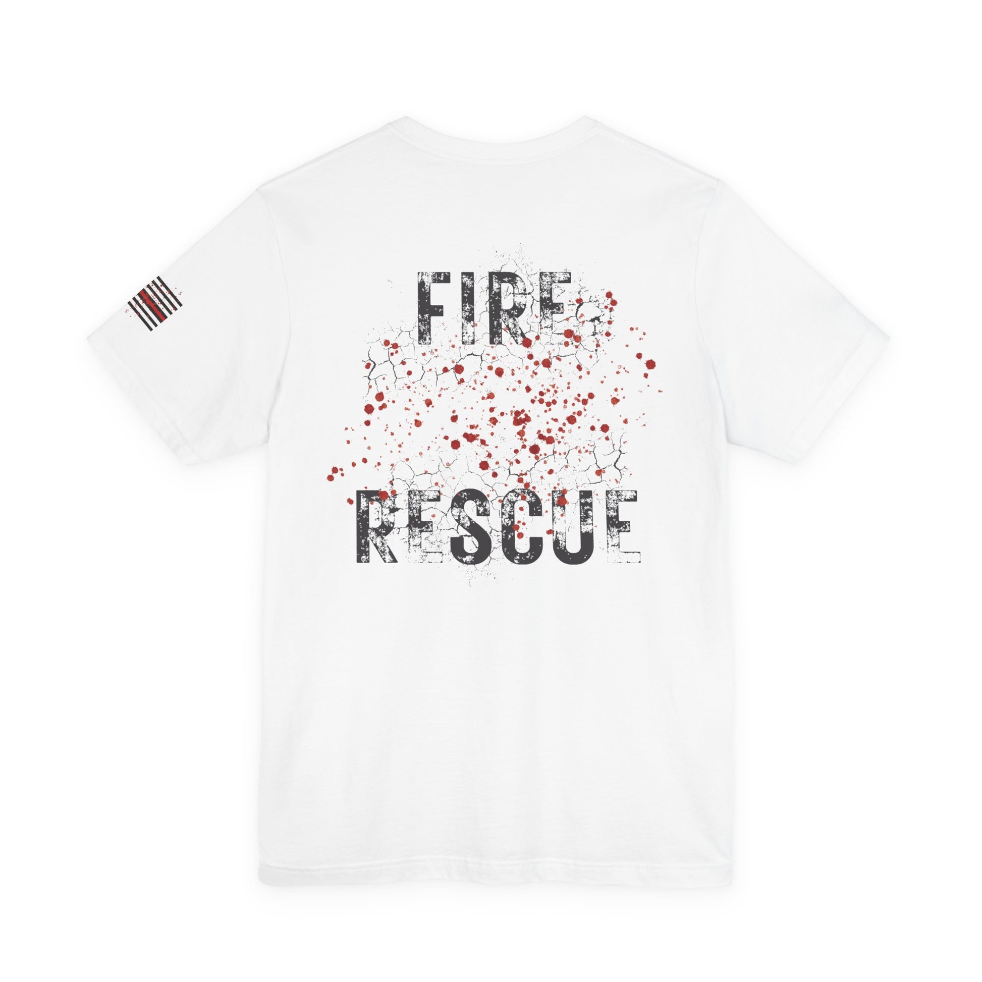 - Thin red line flag on sleeve with blood-splatter front graphic